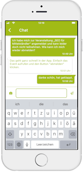 Der Event-Manager in der App ist sehr übersichtlich und einfach bedienbar. Sie können alle Kunden oder gezielt eine exklusive Gruppe einladen (Stichwort: Segmentierung), das Event in unterschiedlichen Sprachen ankündigen oder die Teilnehmerzahl begrenzen. Sollte die Veranstaltung kurzfristig doch nicht stattfinden können, klicken Sie einfach auf den entsprechenden Button im Backend und alle Teilnehmer erhalten automatisch eine vorformulierte Absage.