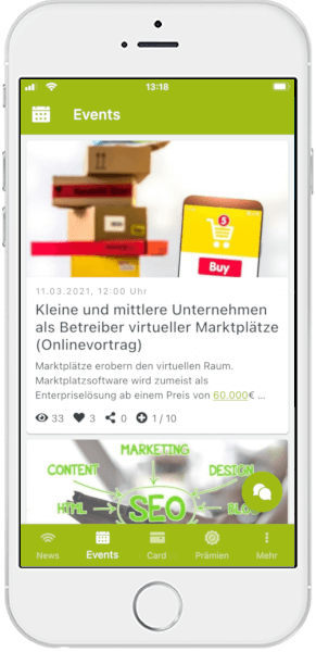 Natürlich können Anmeldungen zu Veranstaltungen wieder mit Bonuspunkten belohnt werden. Und natürlich können ihre Kunden die Ankündigung liken und kommentieren.