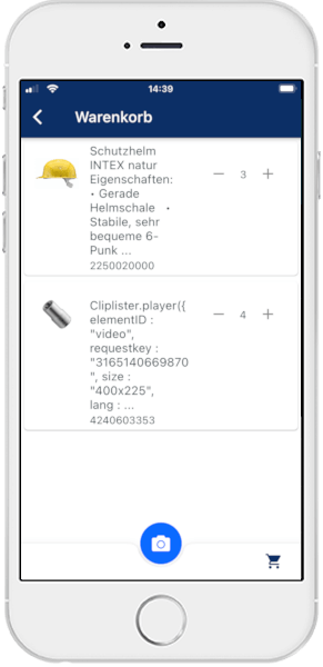 Nachdem ihre Kunden die Codes gescannt haben, sehen Sie im virtuellen Warenkorb alle Informationen zu dem angebotenem Produkt. Nun geben sie nur noch die Bestellmenge an, scannen bei Bedarf weitere Produkte und übertragen mit nur einem Klick den fertigen Warenkorb in ihren angebundenen Onlineshop. Hier kaufen ihre Kunden die Ware zu den hinterlegten Konditionen.